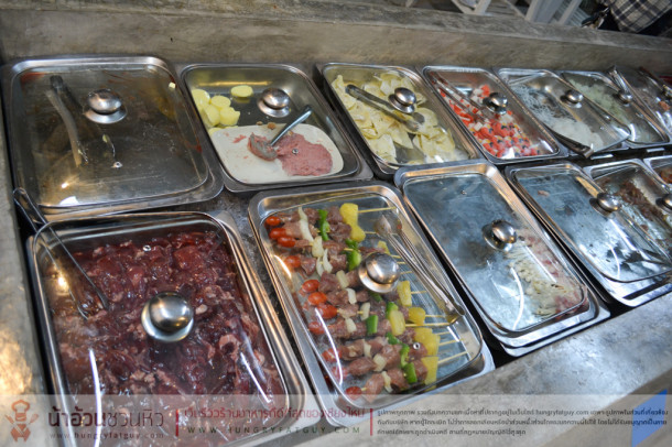 สำหรับรสชาติ หากเคยติดใจในความอร่อยในแบบฉบับเก่า ที่นี่เขาก็ยังคงอร่อยเหมือนเดิมครับ แต่ตอนนี้ได้ปรับเปลี่ยนในส่วนของหม้อต้มให้เป็นแบบใช้แก๊สแล้วนะครับ (ไม่ได้ใช้ไฟฟ้าแบบเมื่อก่อน) น้าอ้วนว่าตรงนี้ดีนะครับ เพราะว่าเราสามารถปรับเปลี่ยนอุณหภูมิได้ตลอดเวลา และไม่ต้องกังวลว่าเดี๋ยวจะร้อน เดี๋ยวจะไม่ร้อน ทำให้เราต้มได้อย่างง่าย สะดวกและราบรื่นดีครับ และเมนูที่เด็ดสำหรับน้าอ้วน และยังเด็ดตลอดกาลก็คือบาร์บีคิว งานนี้น้าอ้วนจัดไปเลย 5 ไม้เบาๆ ครับ