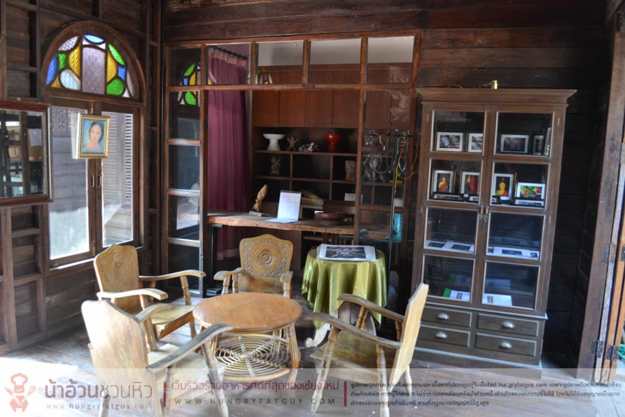 ที่นี่เขายังเป็นแกลอรี่แสดงภาพเขียน หรือเป็นร้านขายของที่ระลึกศิลปะอีกหลายอย่างครับ พื้นที่ให้บริการเขาก็จะมีทั้งโซนห้องแอร์ และโซนด้านนอก มีจุดหนึ่งที่น้าอ้วนชอบมากคือ เขาจะมีลานโล่งๆ (เหมือนบ้านเรือนไทยสมัยก่อน) และจะมีต้นไม้อยู่กลางลานโล่งนั้น น้าอ้วนดูแล้วมันดูดี น่านั่งจิบกาแฟ พูดคุยกัน ถ้าเป็นไปได้นะ น้าอ้วนอยากนั่งตรงโซนนี้มากกว่า แต่ไม่ไหวอ่ะ อากาศร้อนมากๆๆๆ (ไปตอนประมาณ บ่ายสอง) ขอบายดีกว่านั้่งห้องแอร์เย็นสบายกว่า อิอิ (ถ้าเป็นฤดูหนาว น้าอ้วนว่าโอเคเลยแหละโซนนี้)