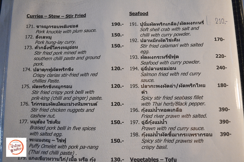 ตอนแรกน้าอ้วนก็คิดอยู่ในใจว่าร้านนี้หรูซะขนาดนี้ ราคาอาหารจะต้องแพงมากแน่ๆ แต่พอได้คุยกับเจ้าของร้านแล้ว เจ้าของร้านก็ทำท่าทางหนักใจอยู่เหมือนกัน เพราะว่าจากที่ได้พูดคุยกับลูกค้าหลายๆ รายแล้ว ทุกคนมีความเห็นอย่างเดียวกันเลยว่าที่นี่จะต้องแพงแน่นอน แต่ที่จริงแล้วราคาไม่ได้แพงเวอร์จนเกินพอดี น้าอ้วนลองมาดูเมนูแล้ว รู้สึกว่าราคาอาหารทีนี่อยู่ในระดับกลาง หรือบางเมนูก็เทียบเท่ากับร้านอาหารทั่วไปซะอีก