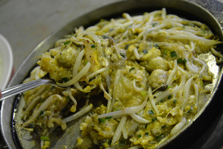 ออส่วนเสิร์ฟมาบนกระทะร้อน หอมฉุยมาก หอยนางรมตัวโตๆ สดๆ นับแล้วได้หลายสิบตัวเลยทีเดียวครับ ที่นี่จะเน้นถึงเรื่องของความสดของวัตถุดิบดังนั้นหอยนางรมที่อยู่ในกระทะร้อนนี้รับรองว่าสดทุกตัว