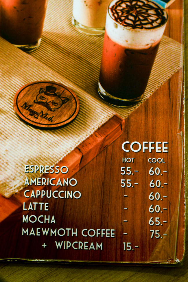 แมวเอ๋ยแมวเหมียว รูปร่างปราดเปรียวเป็นนักหนา ร้องเรียกเหมียว ๆ เดี๋ยวก็มา เคล้าแข้งเคล้าขาน่าเอ็นดู กลอนดอกสร้อยที่บอกลักษณะจขของเจ้าสัตว์แสนซนอย่างเจ้าแมวเหมียวได้เป็นอย่างดี ร้านกาแฟและเครื่องดื่มอีกสไตล์หนึ่งของเชียงใหม่ ที่เอาใจคนที่รักเจ้าเหมียวเป็นอย่างยิ่ง จุดเด่นของแมวมอธก็คือจะมีน้องแมวจากหลากหลายพันธุ์เกือบ 30 ตัว เดินไป เดินมาบริเวณร้าน ซึ่งจะปล่อยอิสระ แต่แมวเหล่านั้นเป็นแมวที่ได้รับการดูแลเป็นอย่างดี ทำความสะอาดอย่างดี ดังนั้นจึงไม่ต้องห่วง เพราะแมวทุกตัวสามารถอยู่ร่วมกับลูกค้าได้เป็นอย่างดี