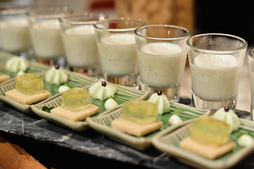 และที่ขาดไม่ได้ก่อนที่จะปิดท้ายมือความอลังการแบบนี้ ของหวานที่เชฟก้องไม่ได้ทำ 5555 (แค่ทำอาหารญี่ปุ่นก็จะหัวระเบิดแล้ว) ของหวานต่างๆ อยู่ในความดูแลของเชฟฟราบริส (หัวหน้าเชฟทีมของหวาน) ของหวานกว่า 8 ชนิดที่จะมาเพิ่มสีสันและความหอมหวานก่อนที่จะอิ่มกับมื้ออาหารที่สุดพิเศษนี้ ตัวเด่นๆ อันนี้ขอใช้ความเห็นส่วนตัวเลยนะ น้าอ้วนขอรีวิวแต่ส่วนที่น้าอ้วนชอบละกัน 5555 (แต่ตัวอื่นคนอื่นก็อาจจะชอบก็ได้ ของแบบนี้แล้วแต่รสนิยมของแต่ละคนเนอะ) เค้กชาเขียว อันนี้ขอ 1st RECOMMENED เนื้อเค้กแน่นมาก และได้กลิ่นของชาเขียวสุดๆ รวมไปถึงถั่วแดงที่ราดมาบนตัวเค้ก หยิบมาทีไรไม่เคยต่ำกว่า 2 ชิ้น , อย่างที่ 2nd RECOMMENDED มาการองมิโซะ (เต้าเจี้ยวญี่ปุ่น) ใครจะเชื่อว่าเต้าเจี้ยวญี่ปุ่นรสชาติเค็มๆ กลิ่นแรงๆ จะเอามาทำขนมได้ แหม่ะ … ระดับเชฟฟราบริสแล้วบอกเลยว่าชิลๆ และพอออกมาแล้วมันเป็นอะไรที่อธิบายไม่ถูกนะ แค่หน้าตามันก็แบบว่าไฮโซมาก ด้านหน้าของมาการองจะพิมพ์รูปนกกะเรียนเอาไว้ กัดเข้าไปคำแรกจะได้ความหวานของไส้มาการอง แต่พอกัดไปถึงใจกลางแล้วจะได้รู้สึกถึงมิโซะที่เค็มๆ ซึ่งความเค็มตรงนี้มันจะช่วยตัดความหวานของไส้มาการองได้เป็นอย่างดี และพอรวมกันมันจะกลายเป็นความกลมกล่อม อืมมมม เข้าใจคิด และบอกเลยว่าหยิบแต่ละทีไม่ต่ำกว่า 4 ชิ้นจ้า 5555 // ปิดท้ายด้วย Highly RECOMMENED อันนี้บอกเลยว่าน้าอ้วนเจอมาเยอะมาก เจอมาหลายร้าน แต่ไม่เคยเจออะไรที่ฟินเวอร์เหมือนที่นี่ ฮันนี่โทส ฟังชื่อแล้วอาจจะธรรมดา แต่ฮันนี่โทสที่นี่เขาทำเป็นชิ้นเล็กๆ เสิร์ฟสำหรับ 1 ท่าน เขาใช้ขนมปังเอาไปอบด้วยความร้อนในหม้ออบ เพื่อให้ขนมปังมีความสุกทั่ว ด้านนอกกรอบ แต่ด้านในยังนุ่ม โปะด้วยไอศครีมขาเขียวที่ขอบอกว่าชาเขียวมว๊ากกกกกกก และราดด้วยถั่วแดงที่หวาน มัน …. คืออันนี้ต้องลองไปชิมนะ ใครที่จองโต๊ะแล้ว พอเสร็จจากของคาว น้าอ้วนแนะนำอย่าพลาด 3 อย่างนี้เป็นเด็ดขาด แต่อย่างอื่นก็อร่อยนะ แต่สำหรับน้าอ้วนแล้วชอบ 3 ตัวนี้ที่สุด