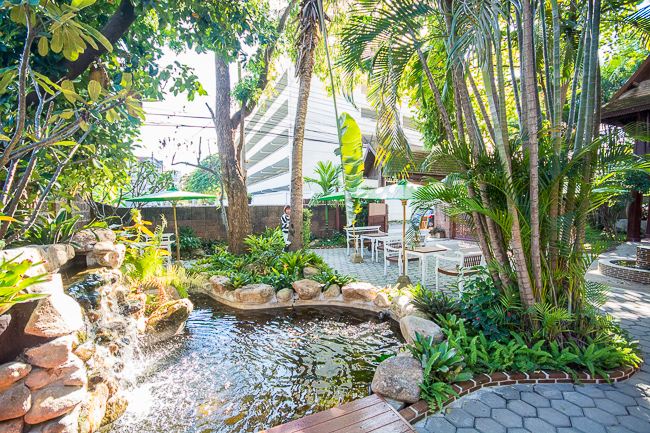 เดินเข้ามาแว๊บแรกก็จะได้พบกับบ้านเรือนไทยหลังใหญ่ สวยงาม แต่ทางร้านเปิดให้บริการเฉพาะโซนด้านล่าง (ใต้ถุน) นะจ๊ะ ส่วนโซนด้านบนยังไม่มีแพลนจะเปิดให้บริการ แต่ถ้ามีกรุ๊ปที่ต้องการจะทำ Private Party ก็สามารถใช้สถานที่ด้านบนได้ สำหรับร้านนี้จะมีอยู่ 3 โซน 3 อารมณ์หลักๆ ได้แก่ โซนเรือนไทย โซนสวนสวยที่เป็นส่วนตัว และโซนคอฟฟี่บาร์ทันสมัย แต่ก็ผสานกันได้อย่างลงตัวพร้อมให้บริการ