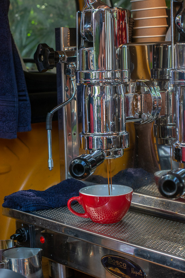 คุณเก่ง : ใช่ครับ ก่อนที่จะมาเป็น Trailer Coffee แห่งนี้ผมเคยทำร้านกาแฟมาแล้ว 4 ร้าน แล้วก็เจ๊งทั้ง 4 ร้าน แต่ด้วยความรักและหลงไหลในกาแฟ จึงยังไม่ย่อท้อที่จะทำร้านอีก และด้วยบทเรียนต่าง ๆ ที่เราได้ทำมามันทำให้เราแข็งแกร่งขึ้น คิดระมัดระวัง อย่างรอบคอบ จึงคิดโมเดล ๆ นึงขึ้นมา ว่าอยากทำร้านกาแฟที่ปลอดภัย สามารถเคลื่อนย้ายไปที่ต่าง ๆ ได้ง่าย ถ้าทำเลนี้ไม่ดีก็ย้าย หรือหาที่อื่น ๆ ไปเรื่อย ๆ เราเริ่มจากนำรถพ่วงลากโรลสายไฟที่ได้ทำการซื้อต่อเพื่อนเจมา มาทำการดัดแปลง ต่อความยาวขึ้นและใส่โครงไม้ เราเริ่มลากไปขายตลาดนัดแถว ๆ บ้านทุก ๆ วันหยุด หลังจากนั้นเริ่มหาโอกาสให้ตัวเองพาตัวเองไปอยู่ในที่ ๆ มีคนเยอะ ๆ ผลตอบรับดีมาก เราจึงได้ขยายโมเดลเรื่อย ๆ จนมาเป็นจักรยานพ่วงลาก และล่าสุดเป็นรถโฟล๊กสีเหลือง และนี่จึงเป็นที่มาของชื่อ Trailer Coffee